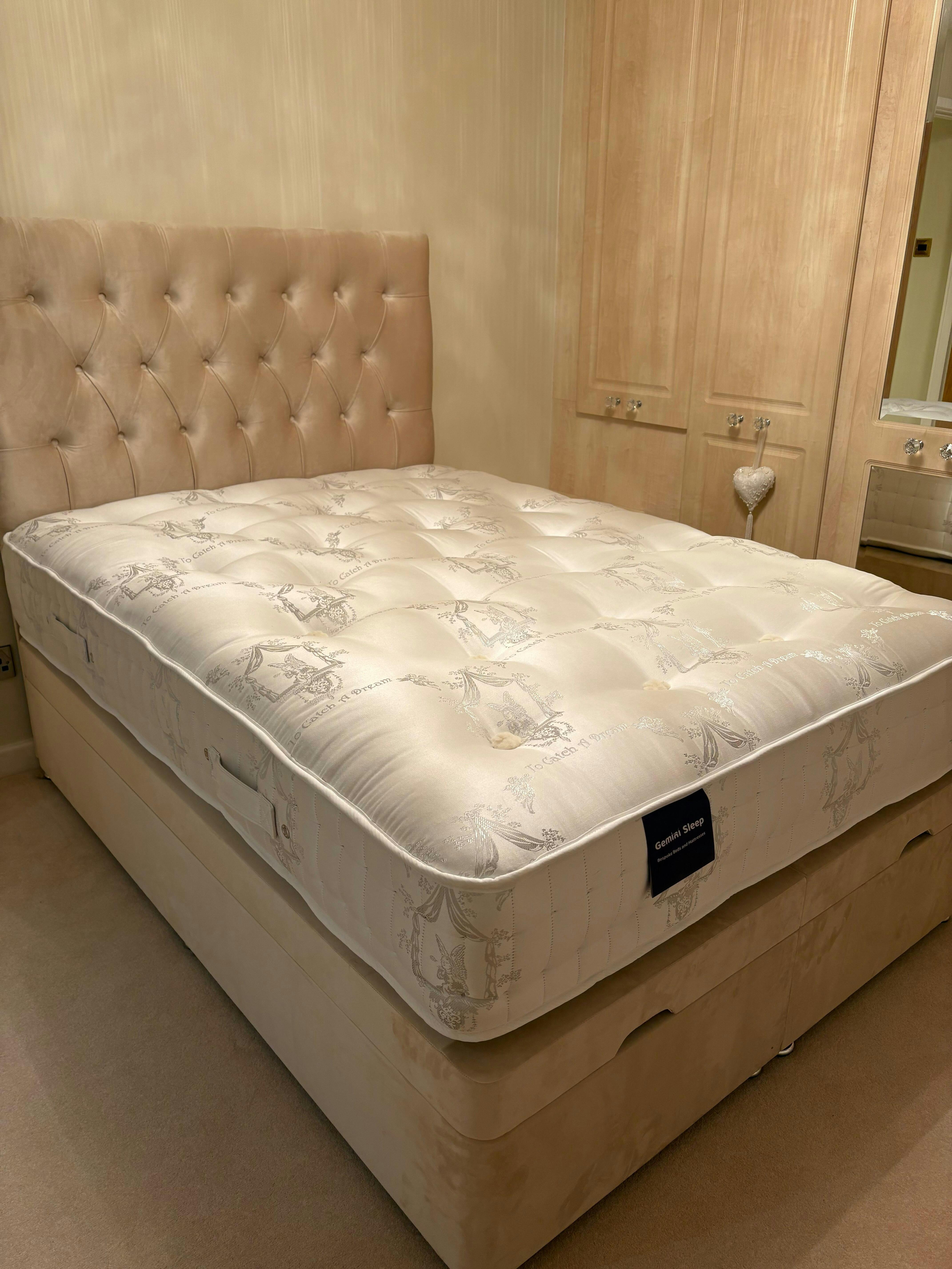 Premium 1500 pocket sprung mattress, hand side-stitched and tufted, with an extended warranty